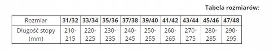- Rozmiar 31/32 (długość stopy 21 cm -21,5 cm)